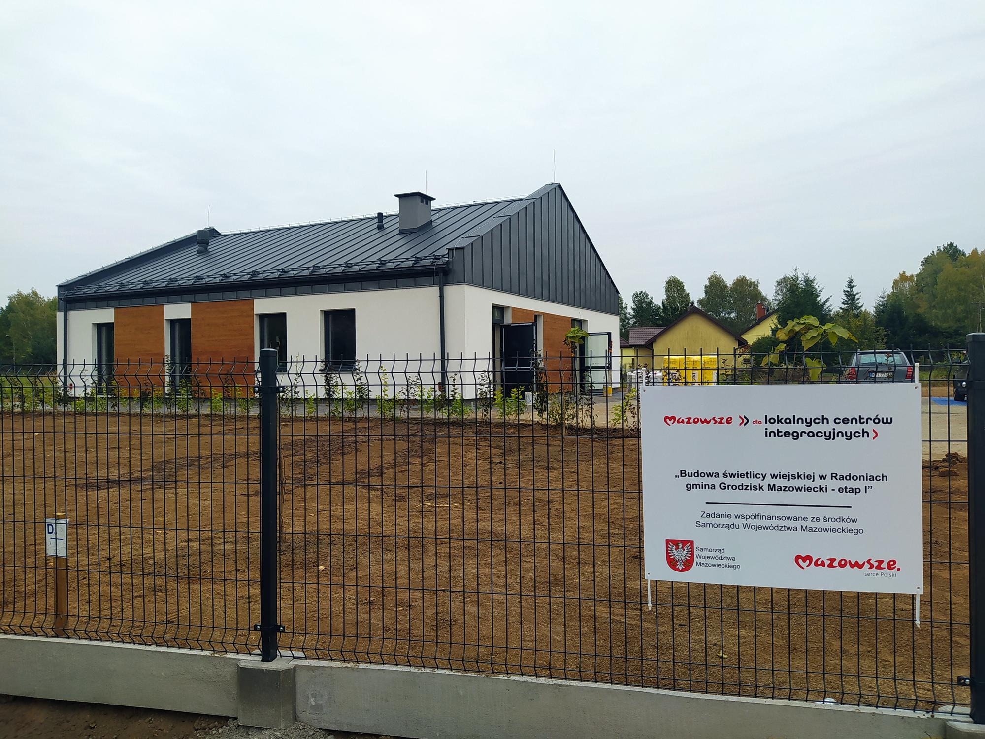Mazowsze dla lokalnych centrów integracyjnych. Budowa świetlicy wiejskiej w Radoniach gmina Grodzisk Mazowiecki - etap I. Zadanie współfinansowane ze środków Samorządu Województwa Mazowieckiego