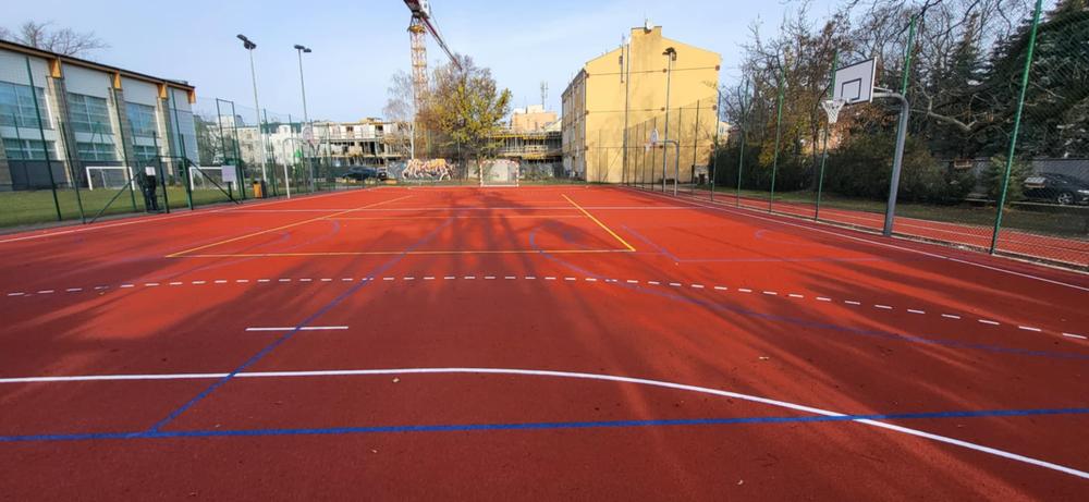 W ramach realizowanego zadania Gmina Grodzisk Mazowiecki przeprowadziła remont boiska wielofunkcyjnego przy Szkole Podstawowej nr 5 przy ul. Zondka 6 w Grodzisku Mazowieckim na dz. ew. 129/4, 131/4 obręb 24.