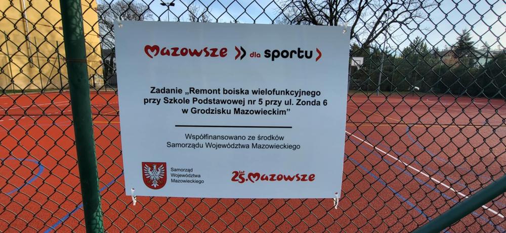 Zadanie „Remont boiska wielofunkcyjnego przy Szkole Podstawowej nr 5 przy ul. Zonda 6 w Grodzisku Mazowieckim” Zadanie współfinansowane ze środków Samorządu Województwa Mazowieckiego