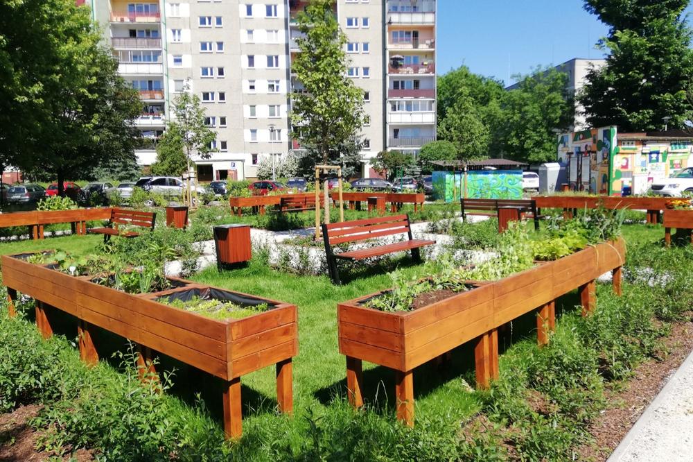 Centralną część skweru zajmuje tzw. „ogród społecznościowy” – miejsce wyposażone w wygodne, podwyższone skrzynki, w którym można uprawiać warzywa, owoce, kwiaty. Skwer został również wyposażony w ławeczki i kosze, wybudowano nowe ścieżki piesze, posadzono drzewa i krzewy, które będą dawać cień i izolować od parkujących samochodów. Posadzono 12 drzew i ponad 3000 krzewów.
