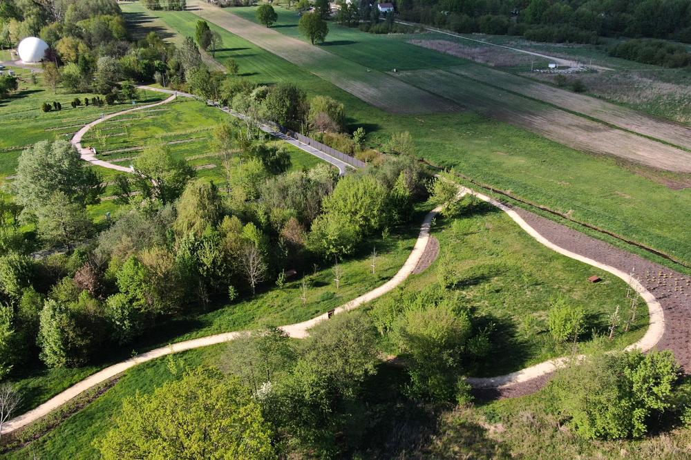 Celem budowy parku było dogęszczenie pasa izolacyjnego między oczyszczalnią a sąsiednimi zabudowaniami poprzez posadzenie 113 drzew i 4000 krzewów. W obszarze bardziej oddalonym od oczyszczalni powstały ścieżki piesze z nawierzchni mineralnych oraz miejsca do odpoczynku dla użytkowników. Park jest położony na granicy zabudowy miejskiej i rozległych pól uprawnych, w sąsiedztwie zbiegu dwóch grodziskich rzek. W konsekwencji, na tym terenie często pojawiają się dzikie zwierzęta. To dla nich w parku ustawiony został paśnik z lizawką oraz podsyp dla bażantów.