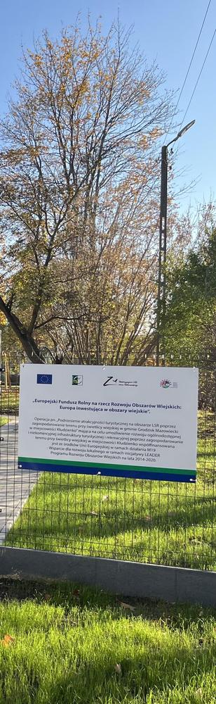 Operacja pn. ”Podniesienie atrakcyjności turystycznej na obszarze LSR poprzez zagospodarowanie terenu przy świetlicy wiejskiej w gminie Grodzisk Mazowiecki w miejscowości Kłudzienko” mająca na celu umożliwienie rozwoju ogólnodostępnej i niekomercyjnej infrastruktury turystycznej i rekreacyjnej poprzez zagospodarowanie terenu przy świetlicy wiejskiej w miejscowości Kłudzienko współfinansowana jest ze środków Unii Europejskiej w ramach działania M19- Wsparcie dla rozwoju lokalnego w ramach inicjatywy LEADER Programu Rozwoju Obszarów Wiejskich na lata 2014-2020.